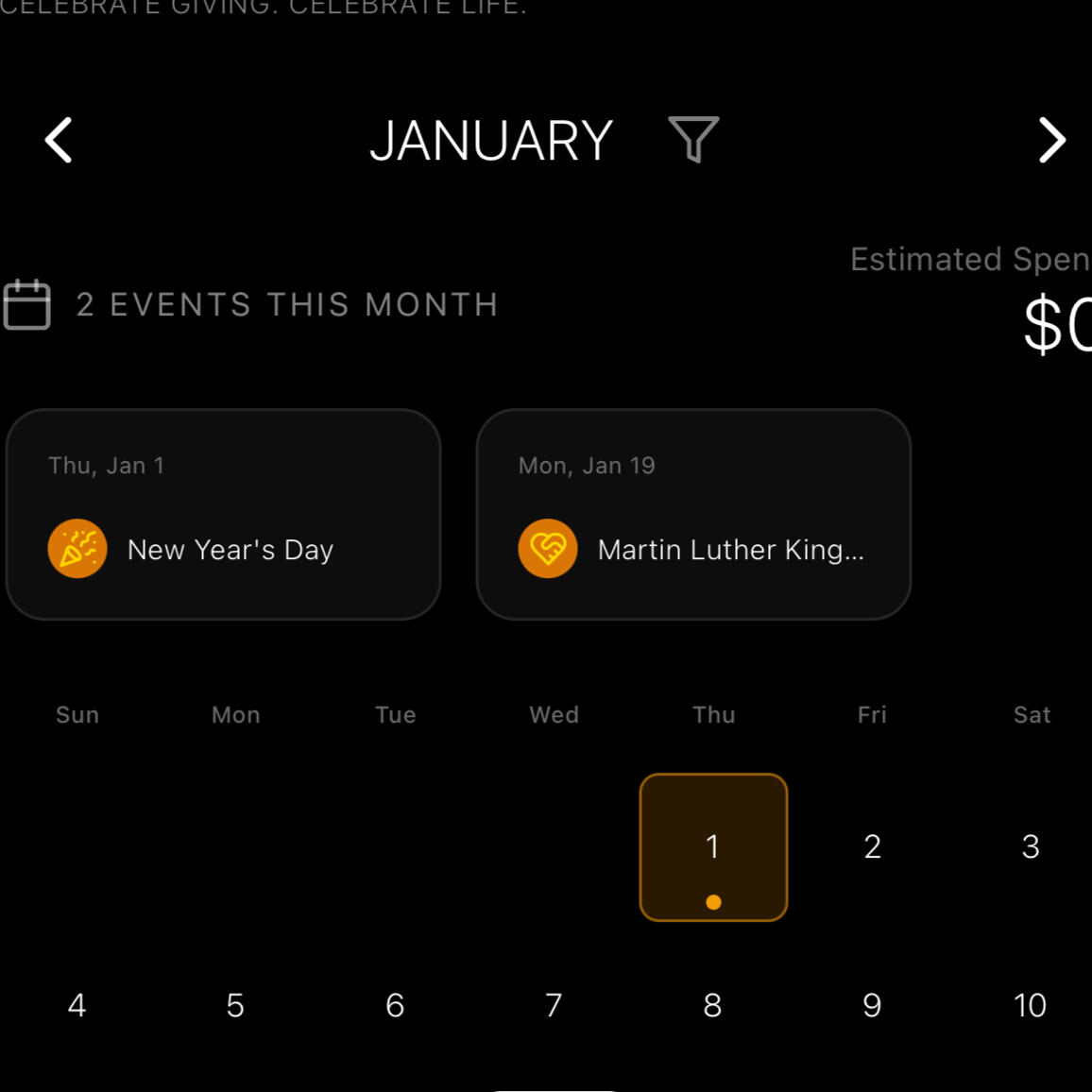 See all your important dates at a glance. Birthdays, anniversaries, holidays — beautifully organized in one place.