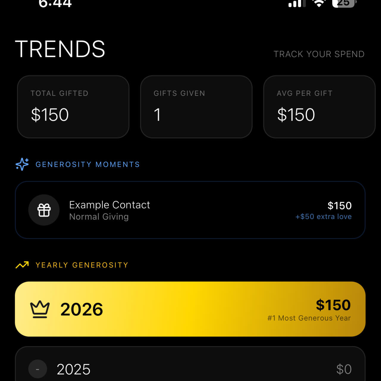 Record what you've given, snap photos of gifts and receipts, and track your spending. See your generosity grow over time